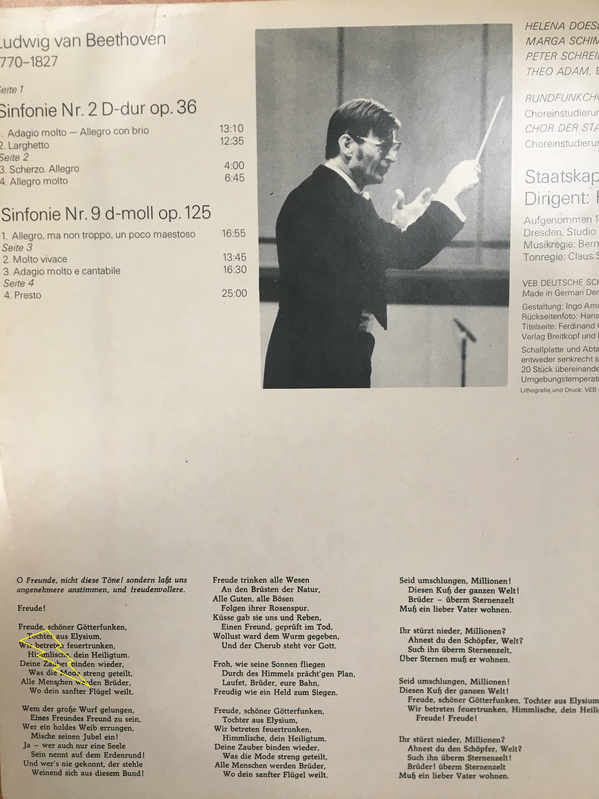 „Flügel“ meinte meine Frau triumphierend und hielt mir das Smartphone vor die Nase. „Quatsch,“ sage ich. „Das hast du gerade reingetippt.“ Also holte sie die Schallplatte, die wir neulich gehört hatten, und auf der der Text ebenfalls abgedruckt war. Auch dort stand es falsch! „Alle Menschen werden Brüder, wo dein sanfter Flügel weilt.“ Naja, kein Wunder. Das war eine DDR Produktion. Natürlich würden die den Text verfälschen. Vermutlich die Stasi oder die DDR Zensur! Schließlich sprach man in der DDR staatspolitisch korrekt auch von der „Jahresendflügelpuppe“ statt vom Weihnachtsengel. „Flügel…“ das macht einfach keinen Sinn! Das ist doch absurd.