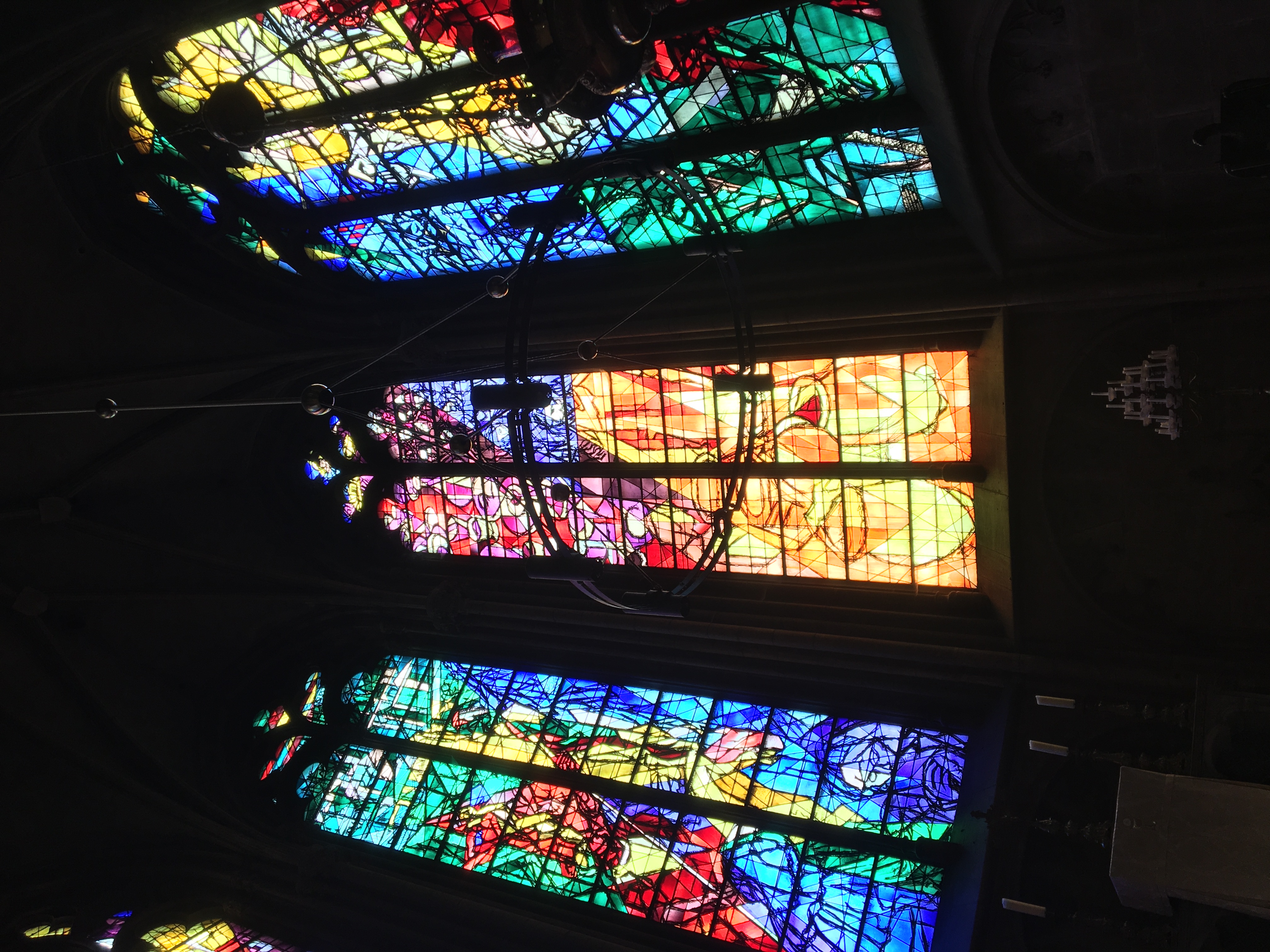 Das Licht, durch die Farben der Fenster war für mich an diesem Urlaubstag Licht- und Farbtherapie. Das Licht in der Sakramentskapelle, das Gelb hat mich berührt. Das Farbspiel tat meiner Seele gut! Vor Chagalls Bild zum brennenden Dornenbusch dachte ich an meine Berufung. Doch viel mehr an den „ich bin, der ich bin“. Gott ist gegenwärtig. Gott war gegenwärtig. Ich brauche Licht, Farben, Weite.
